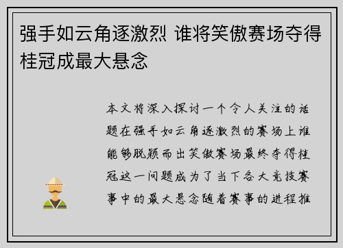 强手如云角逐激烈 谁将笑傲赛场夺得桂冠成最大悬念